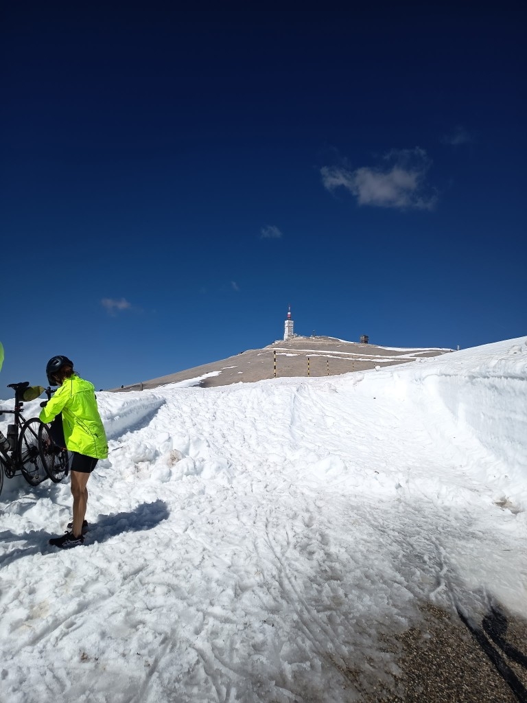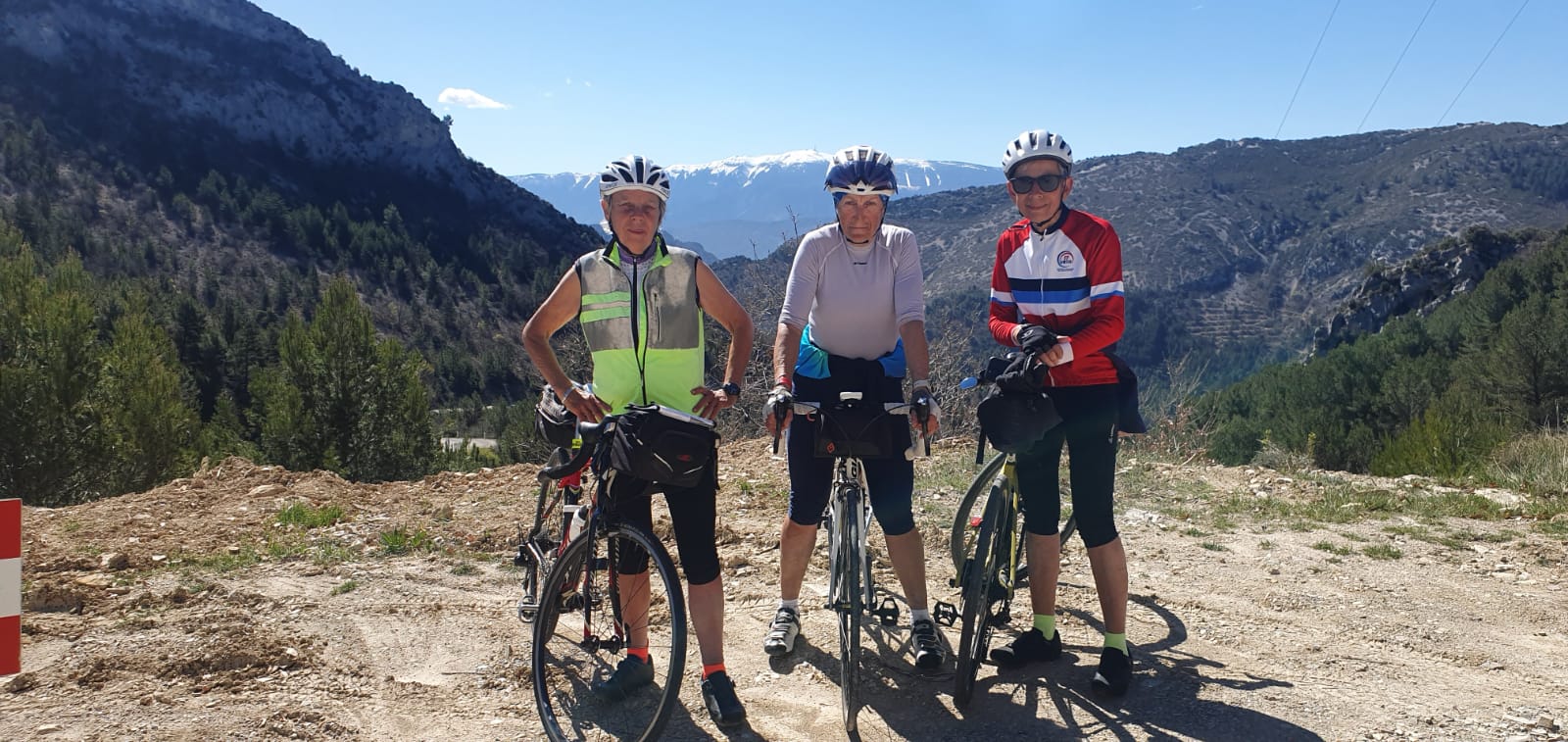 Le dimanche matin, toutes les 3, en compagnie du club de l’Hérault VTS (Vélo Tout Simplement) nous nous dirigeons vers Sault et la concentration pascale. Là, chacune va faire sa vie : Joëlle objectif Ventoux, Marthe objectif Chalet Reynard en finissant toutes les 2 par un retour commun. Quant à moi, j’ai profité de cette concentration pour multiplier les conversations avec de nombreux cyclotouristes car mes très, très longues années de fédé en simple licenciée ou en responsable m’ont permis de connaître des pédaleurs venus de partout. Mon circuit en fin d’après-midi me fera admirer les gorges de la Nesque par son autre versant.