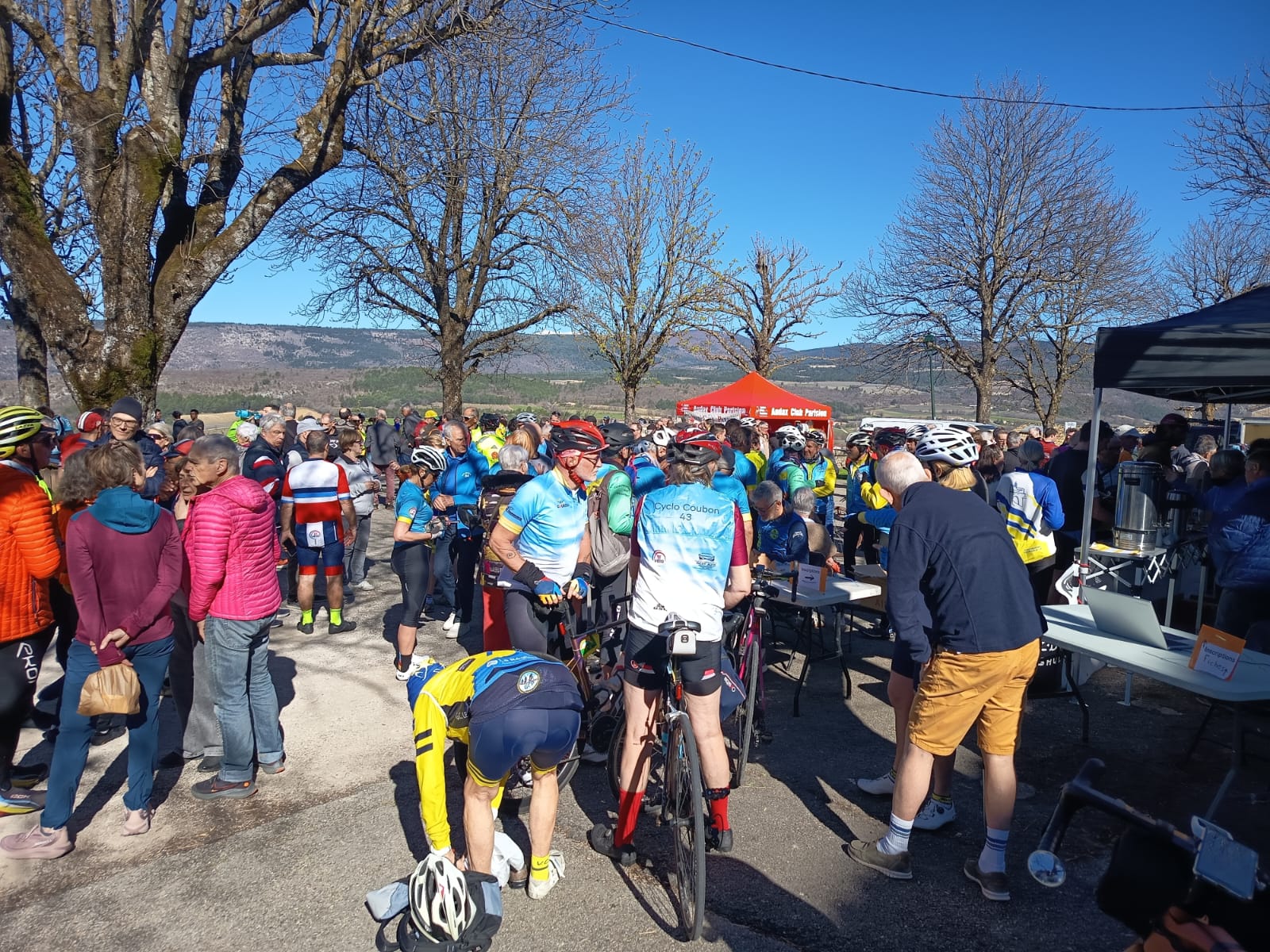 Samedi, ne pouvant aller escalader la montagne de Lure encore enneigée, nous empruntons les parcours proposés par le club de Sault, qui font le tour du Ventoux. Joëlle file sur le grand, nous deux prenons le moyen pour une partie finale qui remonte les Gorges de la Nesque où elle nous rejoindra. Les organisateurs nous ont sorti du sac des jolies petites routes comme seuls des locaux peuvent le faire.